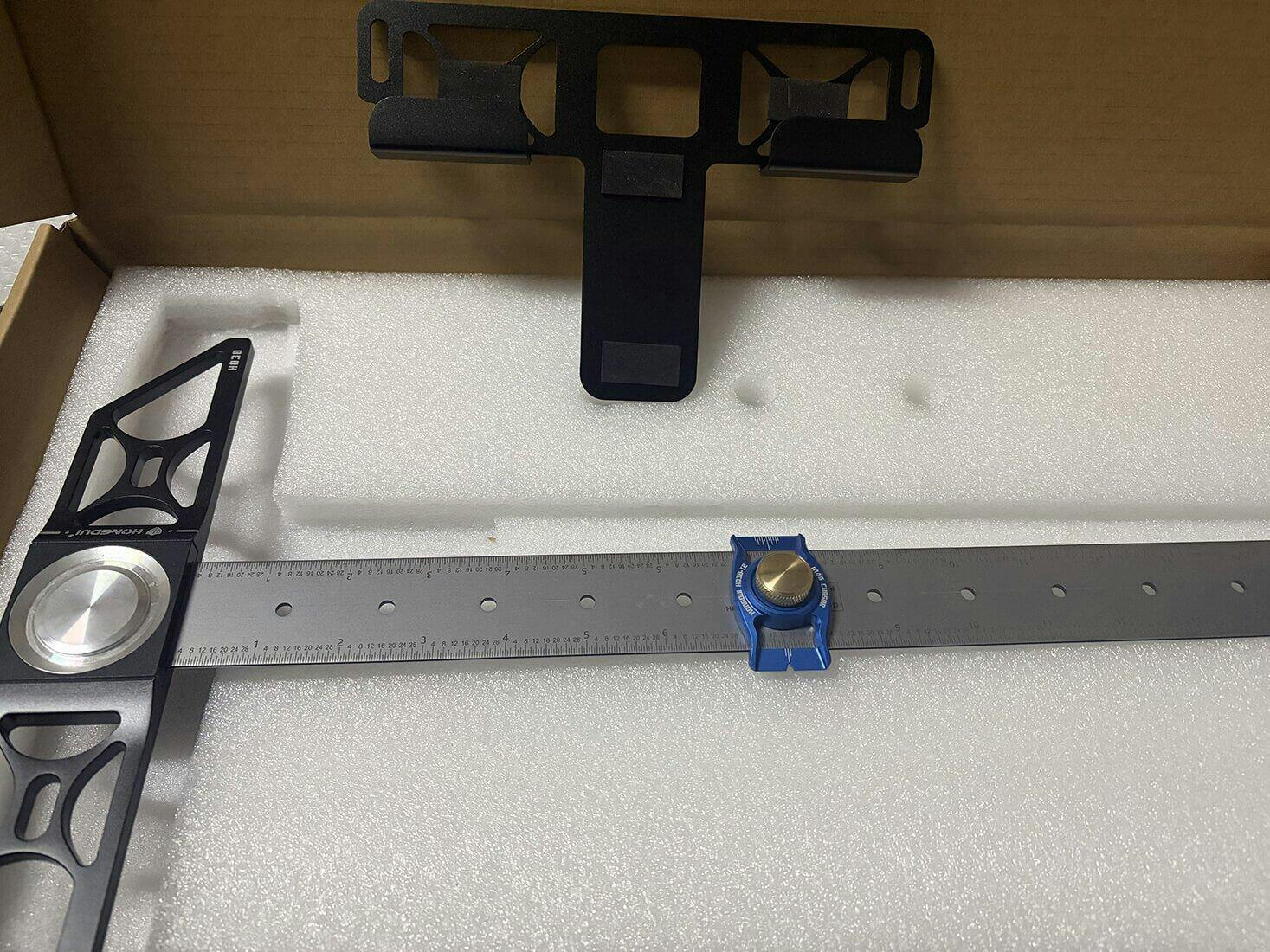 Precision TrueMark T-Square Ruler Adjustable Angle T‑Square Layout Tool for Precise Measurements and Marking Woodworking Scriber, aluminum precision T-Squares feature scribing guides, support lips, laser engraved scales.